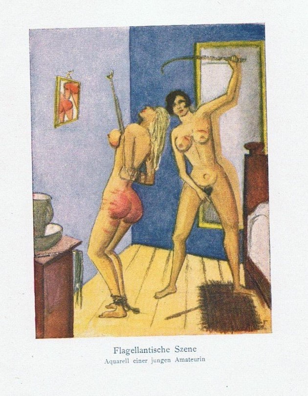 Schertel turns to the psyche, inspired by Freud, Jung, and the concept of the “inner compulsion.” He argues that flagellation is deeply rooted in unconscious drives, a symbol of the struggle between Id, Ego, and Superego. This volume is especially relevant for modern BDSM discussions, as it presents flagellation as a therapeutic outlet for suppressed emotions. - Volume IV (1932): Artistic Representations