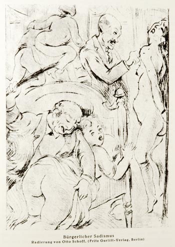 The series is lavishly illustrated with historic drawings, photographs, and plates (some in colour). It follows the motif from its ancient origins through the libertine novels of the 18th and 19th centuries, noting the influence of the Marquis de Sade and Victorian‑era writers. Published during the sexually permissive Weimar Republic, the book sparked controversy; authorities confiscated copies, prompting Schertel to publish a defensive pamphlet in 1931 entitled Flagellantismus und Gesetz.