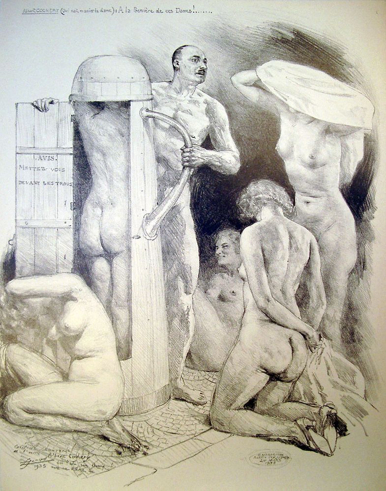 This artwork, created by Albert Guillaume in 1905, is a striking example of early 20th-century French illustration, known for its bold and suggestive themes. Titled “Avant les Trois” (“Before the Three”), it features a provocative scene with nude figures, blending humor and satire, which was characteristic of Guillaume’s style. The piece reflects the artistic freedom and social commentary prevalent in Parisian art circles at the time. For me the work also shows a suggestion, females patiently waiting to be baded by their Master. Surely this is fictional from my own brain and desires, but that is how viewing art works. It works as a mirror and reflects what we wish to see in it, sometimes even from our unconscious mind.
