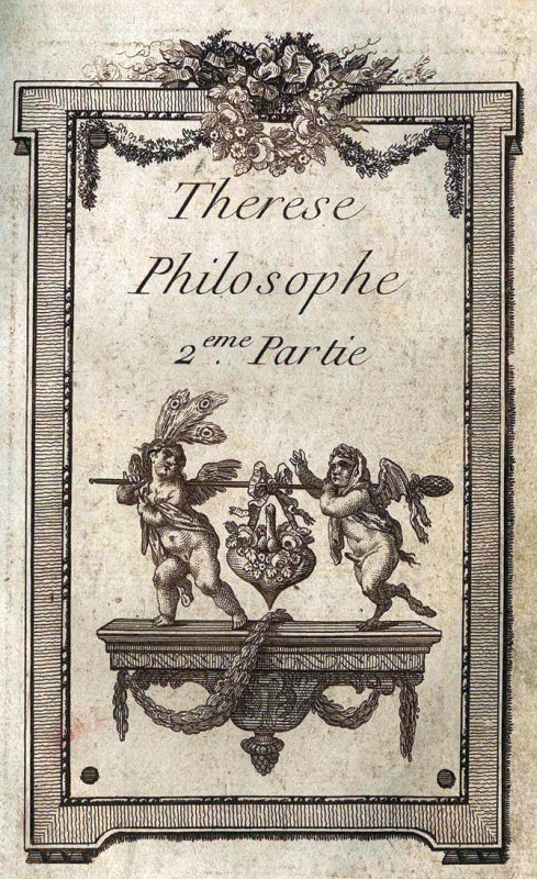 Thérèse Philosophe (Therese the Philosopher) is a 1748 French novel ascribed to Jean-Baptiste de Boyer, Marquis d’Argens, or, according to a minority opinion, Denis Diderot and others.