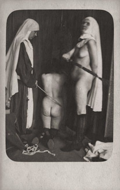 - “Affectionate” stagings – A cheeky publicity image from the late‑1920s to early‑1930s, captioned Monk Gives a Nun an Affectionate Spanking, was reproduced as vintage‑style prints. It’s clearly staged for titillation rather than depicting genuine penance.