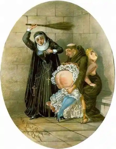 By the medieval period (roughly 500‑1500 CE), monasteries and convents functioned like boot camps for the soul. Monks and nuns could receive upper discipline (a back‑whip administered publicly as penance) or lower discipline (a buttocks‑spank given privately for humility), often performed bare‑bottomed to amplify shame.