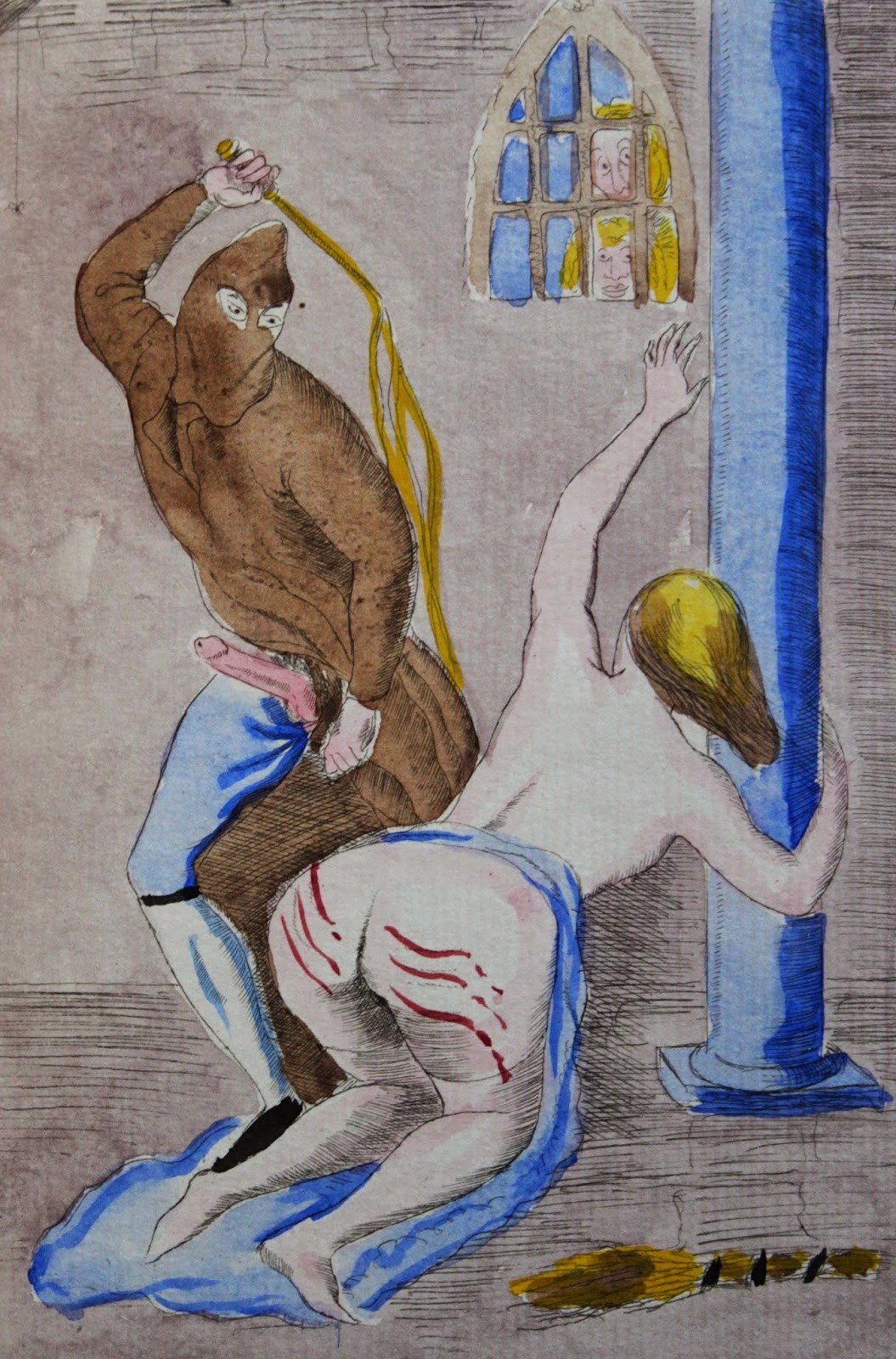 The illustrator Martin van Maële contributed his own take in La Grande Danse Macabre (1905). During the Reformation, engravings took on a political edge. Protestant artists such as Matthaeus Greutner (16th century) sketched monks spanking nuns to mock Catholic “corruption,” yet the exaggerated poses also feed a fetishist imagination.