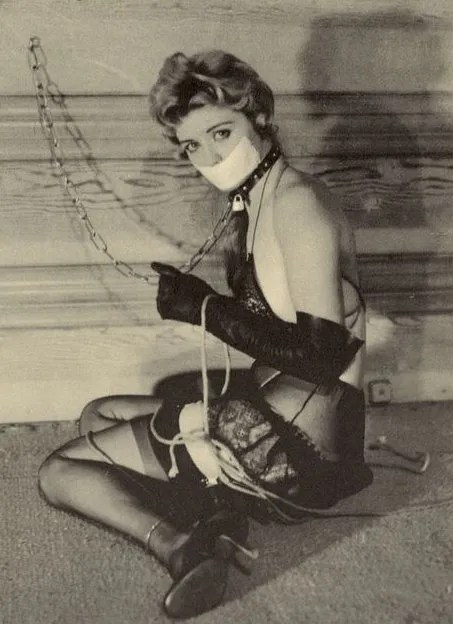 These images, often featuring diamond-pattern harnesses, gags, and dramatic lighting, weren’t mere poses; they were stories of trust and transformation. Judy coaxed creativity from Willie, inspiring sequences that explored themes of surrender and strength, and her work helped fund his burgeoning LA studio. In a time when such art was whispered about in hidden circles, she helped normalize the aesthetic of consensual restraint, influencing the glossy, theatrical style that defined mid-century fetish photography.