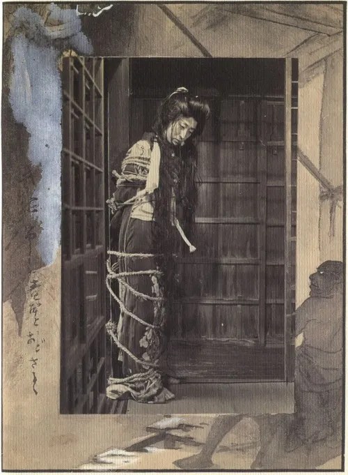 Deeply inspired by kabuki theater and Edo-period customs, Ito published An History of Edo and Tokyo Manners after the 1923 Great Kantō Earthquake. His signature technique involved binding models in intricate rope patterns, photographing the poses, and using the images as references for his paintings.