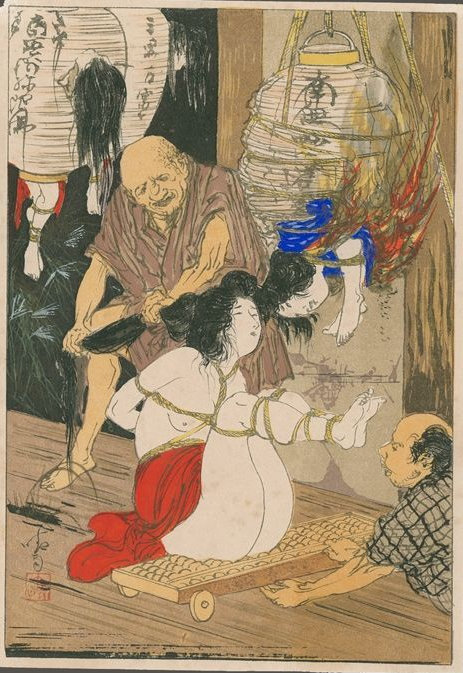 Around 1907, Ito started illustrating for newspapers. In 1919, he hired a young art student, Kise Sahara, as a model. She became his second wife after becoming pregnant and willingly posed for his increasingly daring bondage studies.
