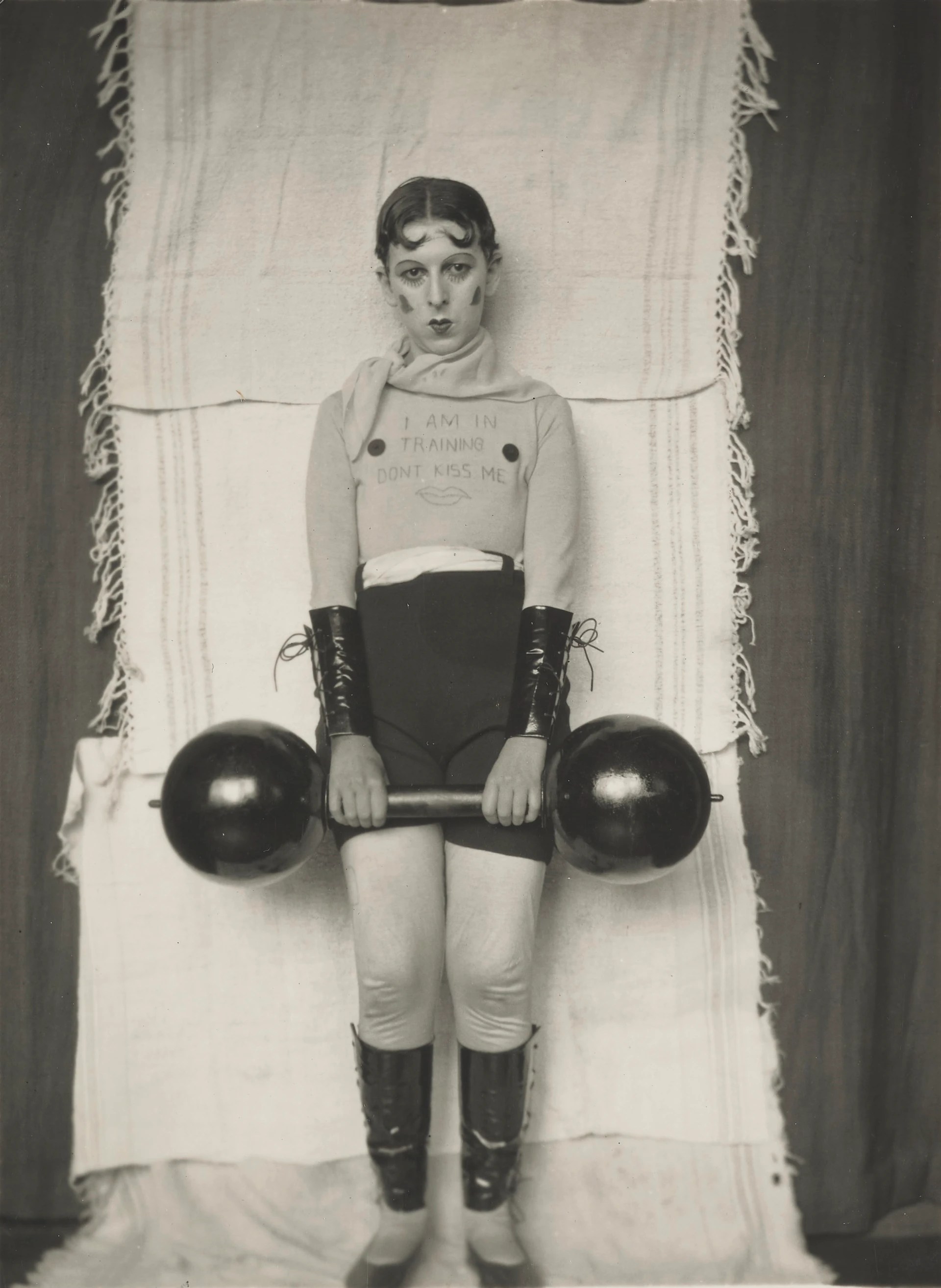 Claude Cahun’s greatest strength lay in her self‑portraits—a series of stark black‑and‑white photographs from the 1920s and ’30s that blur the line between artist and subject, reality and performance. Mostly staged by Marcel Moore, the images show Cahun in a range of guises: a stern bodybuilder with sewn‑on nipples and a sign that reads “I’m training, don’t kiss me,” a child‑like figure perched on an ornate wardrobe shelf, or an androgynous person staring defiantly at a mirror with a shaved head—a radical rejection of contemporary feminine ideals.