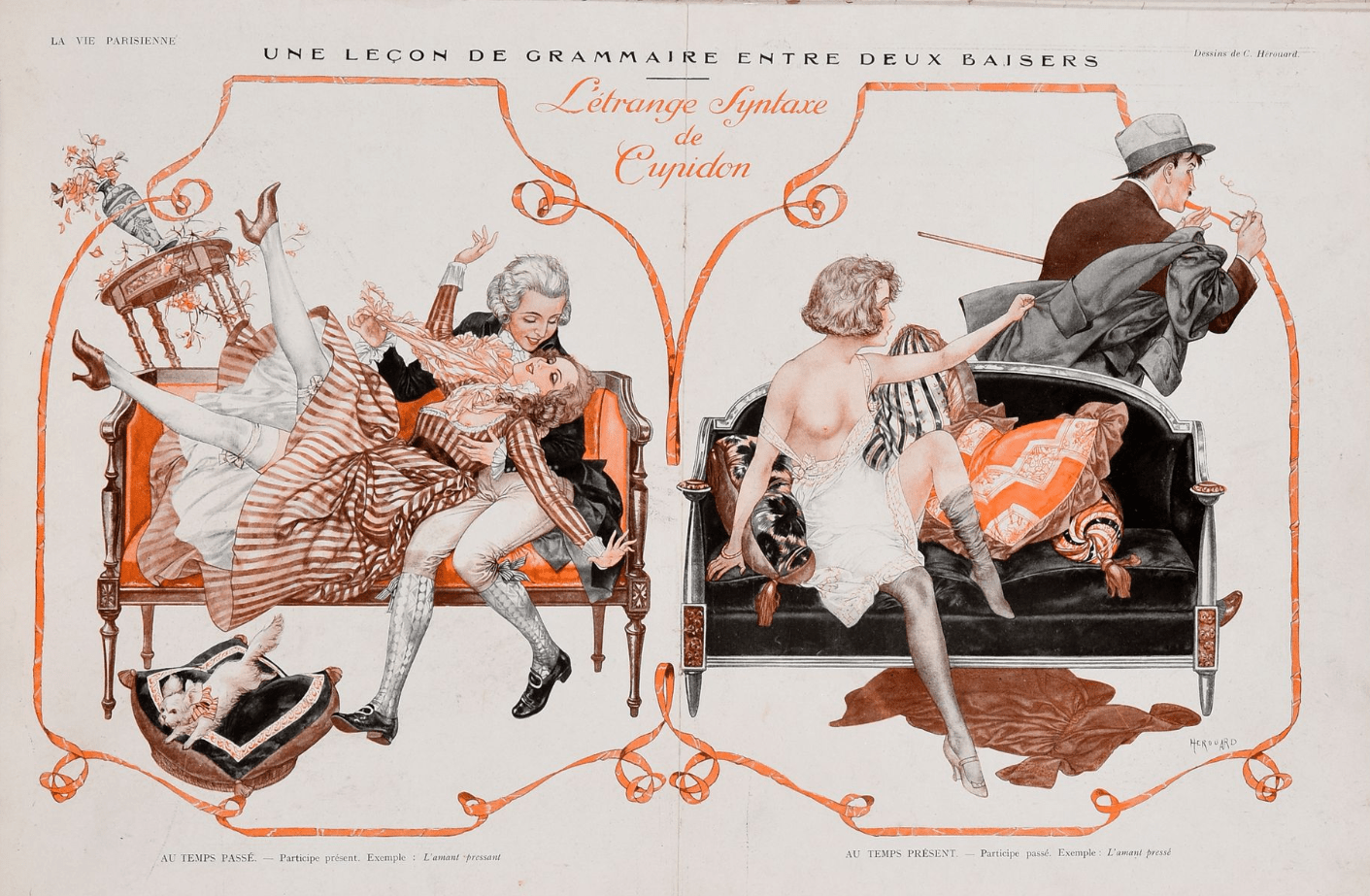 Chéri Hérouard (1881–1961) was a master French illustrator. Under the pseudonym Herric, he transformed the innocent charm of 1920s–1930s Paris into a playground of refined erotic discipline. Hérouard is best known for his long-running contributions to La Vie Parisienne. He infused spanking and light BDSM themes with theatrical flair.
