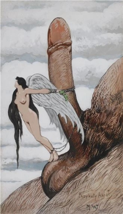 As a clandestine muse of vintage BDSM aesthetics, Wawrzeniecki’s fusion of pagan dominance and sensual devotion prefigures modern ritual kink. His scarce originals remain talismans for collectors, inviting lingering in the sacred grove where love’s embrace meets inexorable grasp. Wawrzeniecki believed art must confess the artist’s innermost truths. Visions of carnal symbols intertwined with mortality’s cruel poetry transforming historical reverie into a portal for the viewer’s own shadowed appetites.