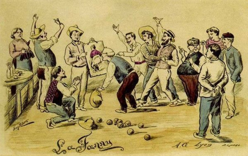 In the early 20th century, the game was predominantly played by men in cafés and on boulodromes in southern France. It fitted perfectly into a social, male-dominated culture of cafés, pastis, and betting. Women rarely participated in competitions or public matches, which makes the tradition surrounding Fanny (a playful humiliation inflicted by men) entirely logical. The ‘Fanny’ tradition appears to be older than pétanque and is rooted in the broader boules culture from the 19th century, with influences from regions like Provence, Lyon and the Dauphiné.