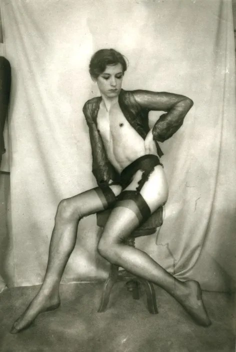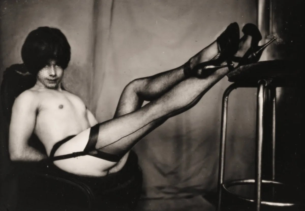 His leg and stocking fetishism dominated much of the imagery, redirecting erotic focus away from conventional genitalia toward fragmented, idealized body parts. Photography became his ultimate tool for transformation: more faithful than any mirror, it allowed him to construct an idealized, fluid self unbound by societal gender norms or moral constraints.