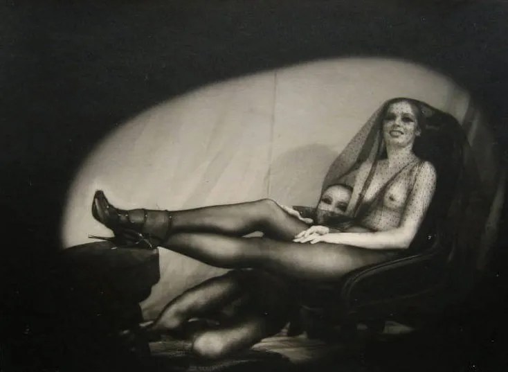 Molinier joined the Surrealist circle in 1955 after André Breton discovered his work and hailed him as the “magician of erotic art.” Yet his creations pushed even further into the transgressive, prefiguring modern BDSM aesthetics, queer identity exploration, and body modification art. His posthumously published series Cent photographies érotiques (1979) remains a cornerstone of underground erotic photography, celebrating chains, heels, veils, and ritualistic self-penetration as instruments of personal liberation.