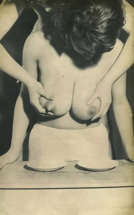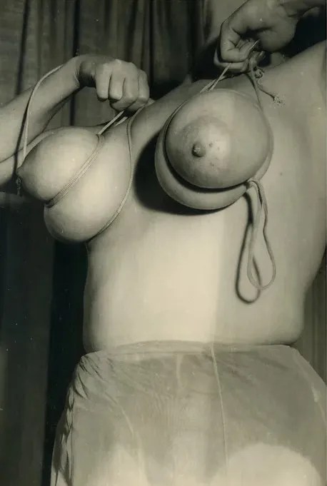 A photographer, careful to preserve his anonymity, masterfully exploited mammary fantasies with a pronounced taste for bondage, whipping, tying, stretching, and deforming generous bosoms until drops of milk sometimes appeared.