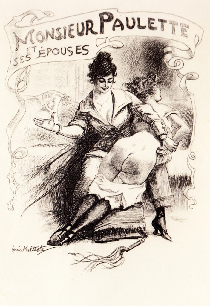 He not only illustrated but also authored several works under his pseudonym, including the classic duo Qui aime bien… châtie bien (1912–1913) and Paulette Trahie (1922). His art helped define the golden age of French spanking literature, turning private fantasies into beautifully rendered visual narratives.