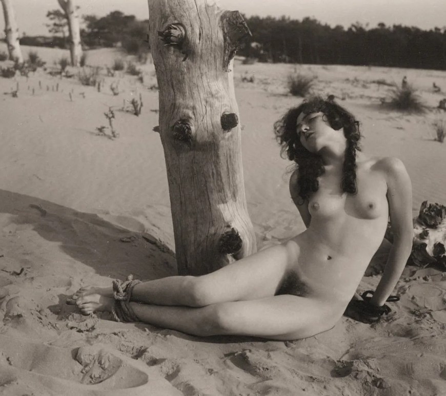William Seabrook (1884–1945), occult journalist and BDSM pioneer, ritualized bondage as mystical ecstasy among Surrealists. He commissioned Man Ray's 1930 Fantasies series, featuring Lee Miller collared by Maison Worth. The infamous 1929 Paris staircase incident chained a submissive for voyeuristic photos. His transcendent sadism legacy persists despite tragic suicide.