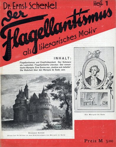 Der Flagellantismus als literarisches Motiv (Flagellantism as a Literary Motif) is a pioneering, multi‑volume study by German author, occultist, and early sexologist Ernst Schertel (1884‑1958). Issued in four volumes between 1929 and 1932 by Schertel’s own Parthenon Verlag in Leipzig. The work stands as one of the most thorough early scholarly investigations of flagellation, specifically the erotic excitement generated by whipping or being whipped, as a recurring theme … Continue reading Flagellantismus als literarisches Motiv